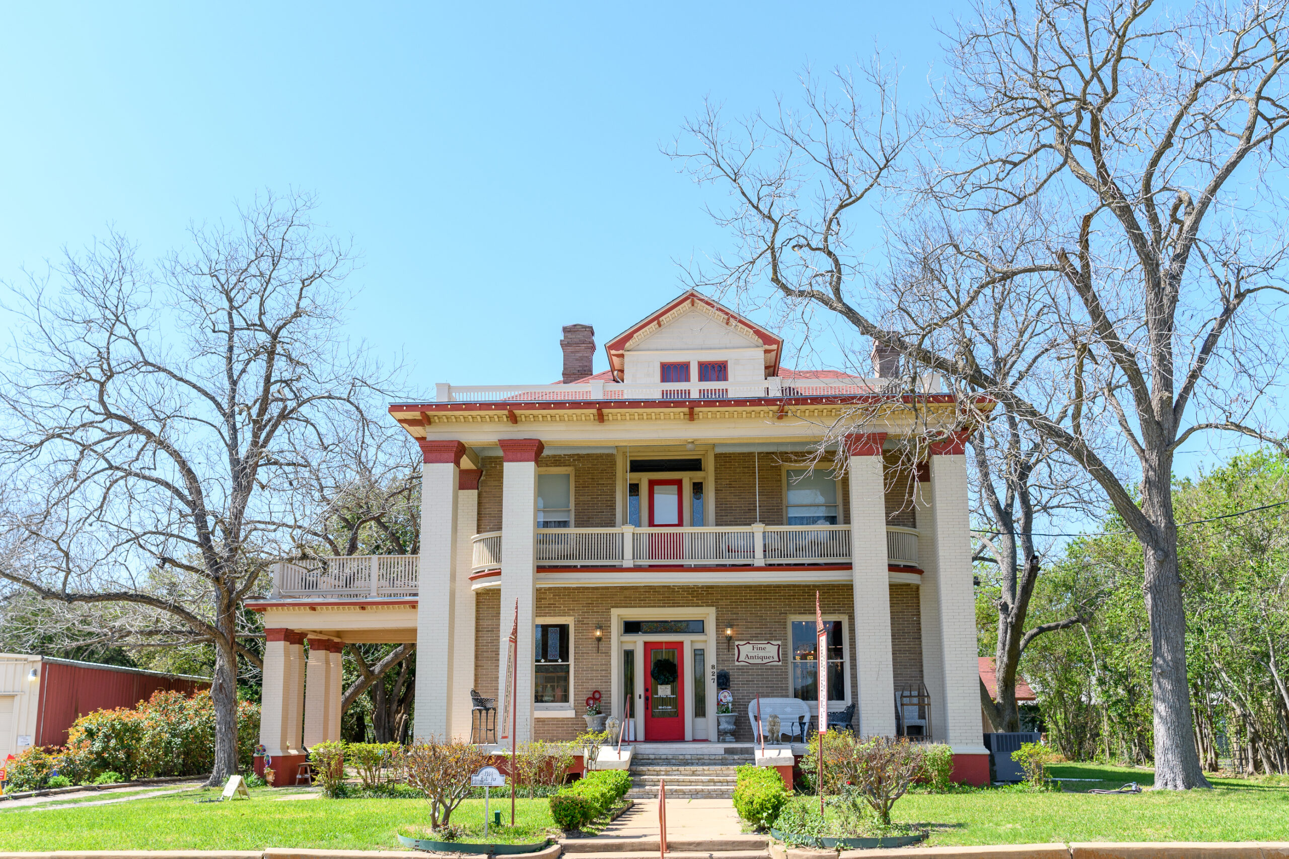 Built in 1914 for Frank Merriman Fly and Stella Miller Fly, this substantial American Four Square residence reflects the rise of a lawman turned banker who became a stabilizing force during the financial crises of the 1930s. Born June 12, 1866 at Big Hill, Frank worked in the Peck & Fly store, served as a deputy under Sheriff Dick Glover, and was appointed sheriff in 1901 after Glover’s death. He later moved into banking, joining Gonzales State Bank in 1909 and serving as president until 1940. Contemporary accounts credit him with using personal funds to keep the bank operating during the Great Depression.